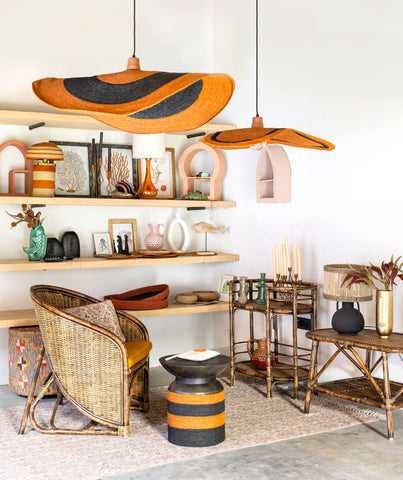 Bring a vibrant, sun‑kissed glow to your interior with the Uluwatu hanging lamp. Its warm orange tone, highlighted by a subtle contrasting...